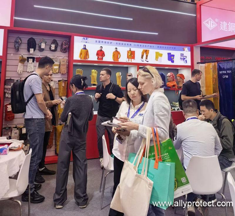 展會(huì)現(xiàn)場(chǎng),友盟防護(hù)以紅色為主色調(diào)的展位格外醒目,品牌標(biāo)識(shí)“AP(AllyProtect)”與“友盟焊接防護(hù)·共創(chuàng)安全未來”的標(biāo)語熠熠生輝,直觀傳遞出品牌專注焊接防護(hù)裝備研發(fā)生產(chǎn)20年的專業(yè)底蘊(yùn)。展位內(nèi),系列焊接防護(hù)手套、防火阻燃防護(hù)服、防護(hù)面罩等核心產(chǎn)品整齊陳列,從基礎(chǔ)防護(hù)裝備到高性能定制產(chǎn)品,全面覆蓋焊接作業(yè)不同場(chǎng)景的防護(hù)需求,每一件產(chǎn)品都彰顯著友盟對(duì)品質(zhì)的嚴(yán)苛把控與技術(shù)創(chuàng)新的深耕。
